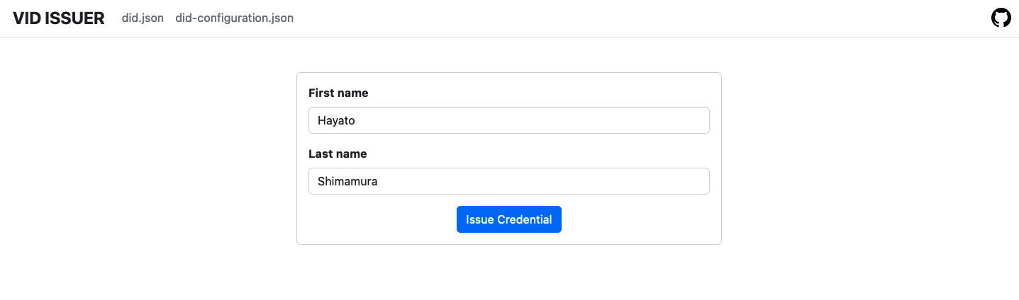 名前を入力して Issue Credential