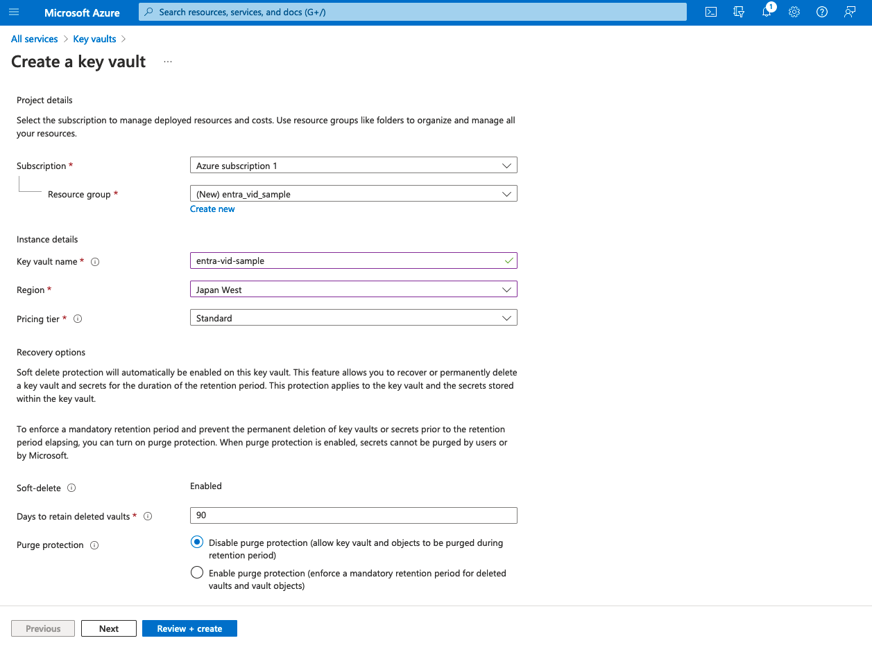 2. Azure Key Vault を作成