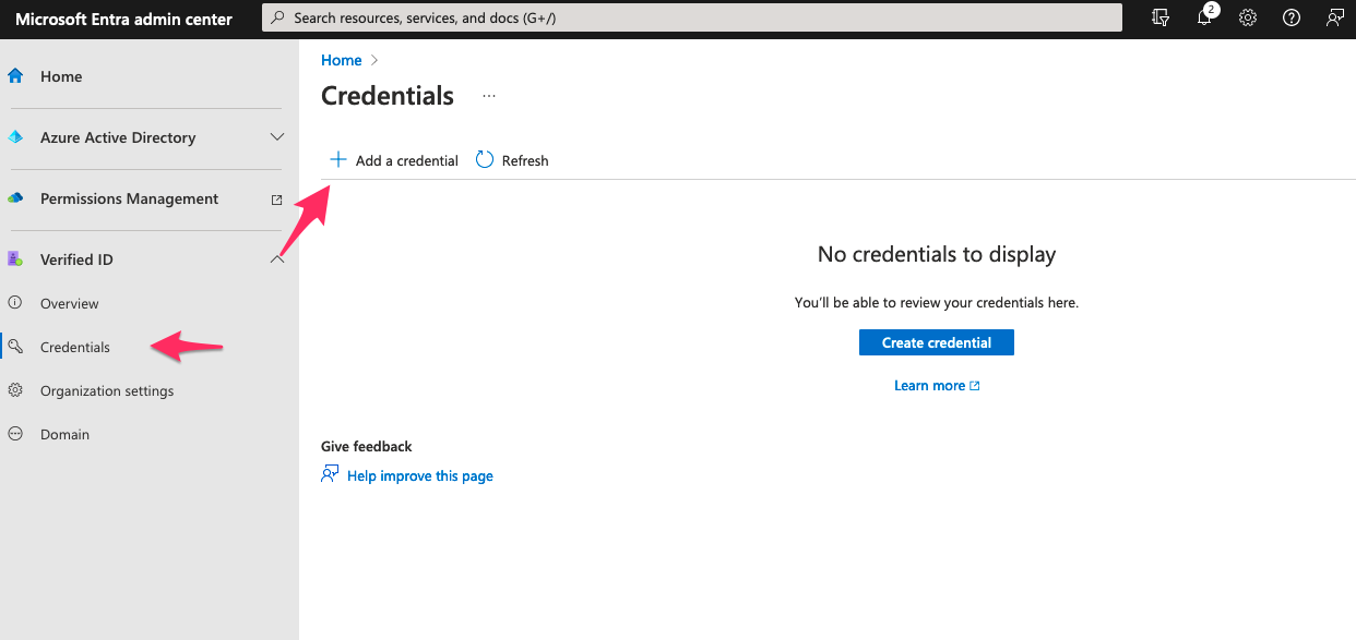 サイドバーから遷移し Add a credential