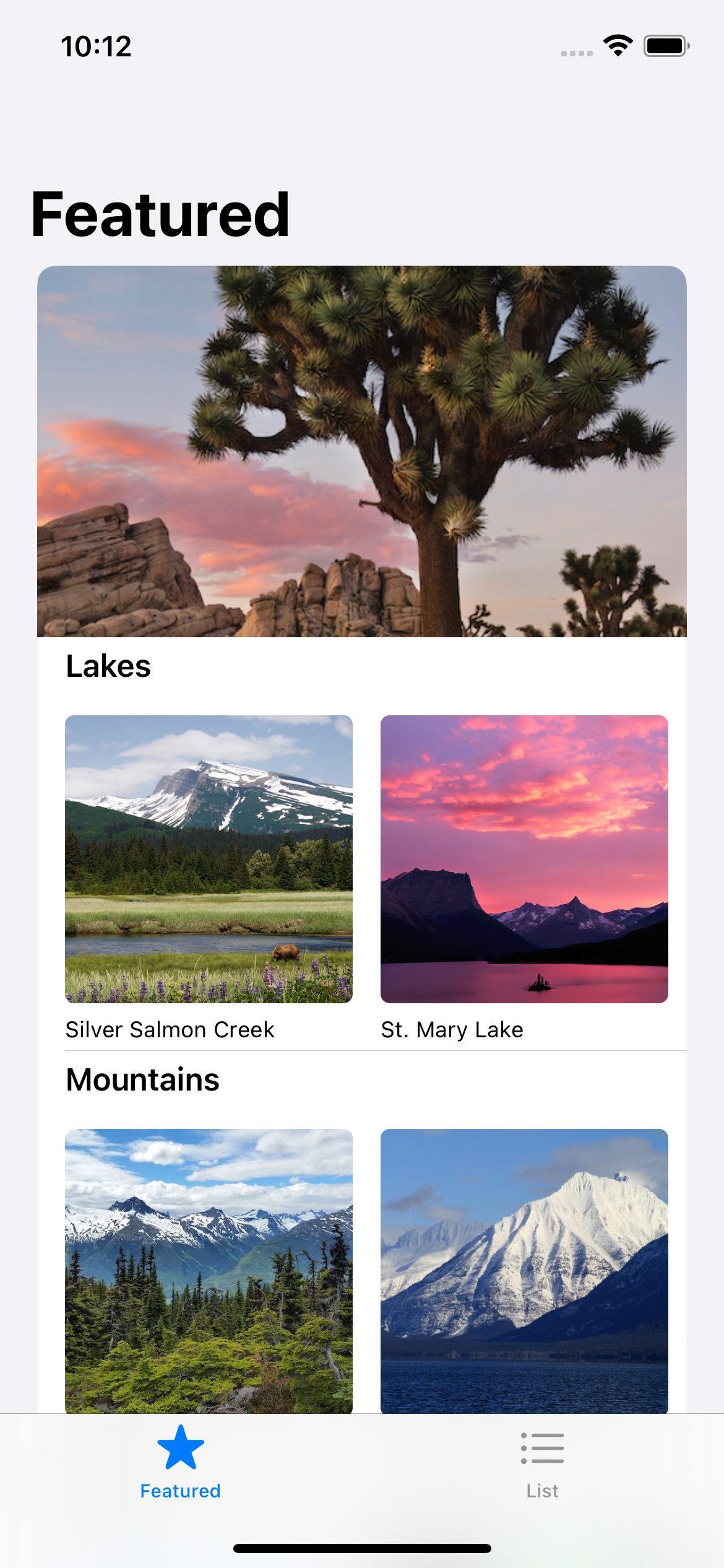 struct ContentView: View { @State private var selection: Tab = .featured enum Tab { case featured case list } var body: some View { TabView(selection: $selection) { CategoryHome() .tabItem { Label("Featured", systemImage: "star") } .tag(Tab.featured) LandmarkList() .tabItem { Label("List", systemImage: "list.bullet") } .tag(Tab.list) } } }