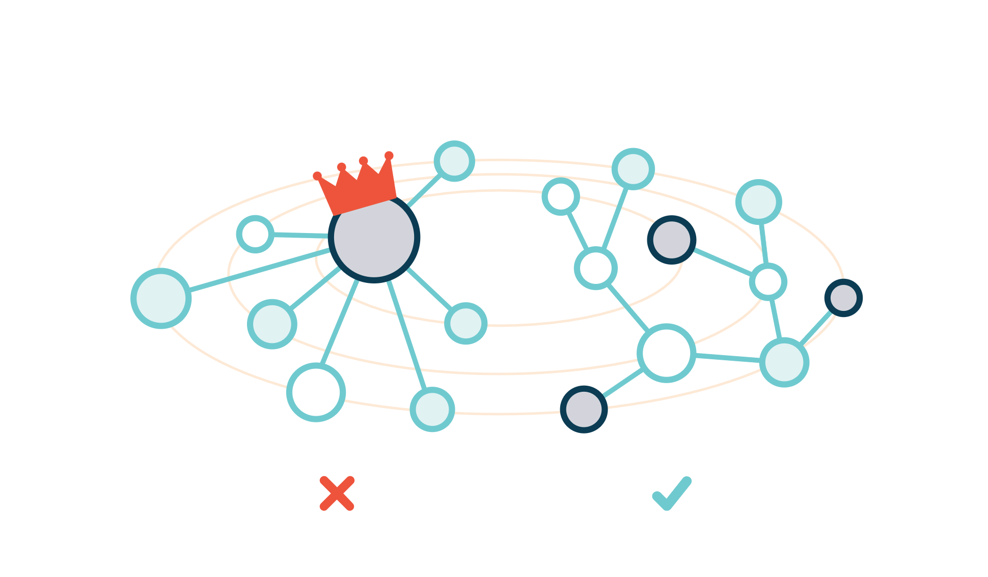また、サーバーに管理者が存在することで中央集権的であることもデメリットとなることがあります。とある一社が膨大なデータを蓄積管理し、個人の情報へのアクセス権を持つことになります。その一社が決して不正アクセスしない、といった保証はどこにもありません。不正など「ないだろう」と信じて預けるほかありません。また、国家による情報統制も、ロケーション指向型であれば容易に可能です。特定ロケーションへのアクセスを遮断するだけで簡単に市民のアクセス権を奪うことができます。